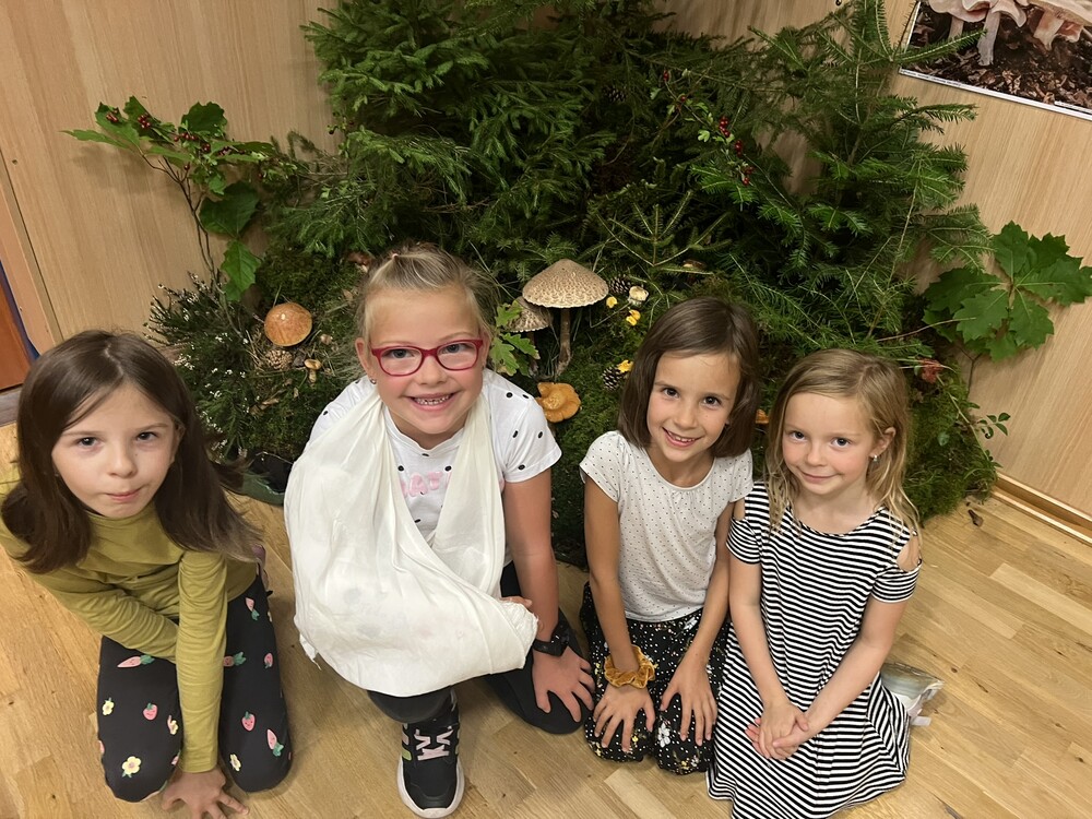 V říjnu jsme se už ponořili do začínajícího podzimu. V rámci tématu „Houby, houby, houbičky“ jsme tvořili, poznávali les a při výtvarné akci „Co to mám v košíčku?“ vznikly krásné podzimní výrobky inspirované přírodou. Připomněli jsme si také Den stromů, pozorovali barvy podzimu a při pobytu venku sledovali, jak se mění okolní svět.